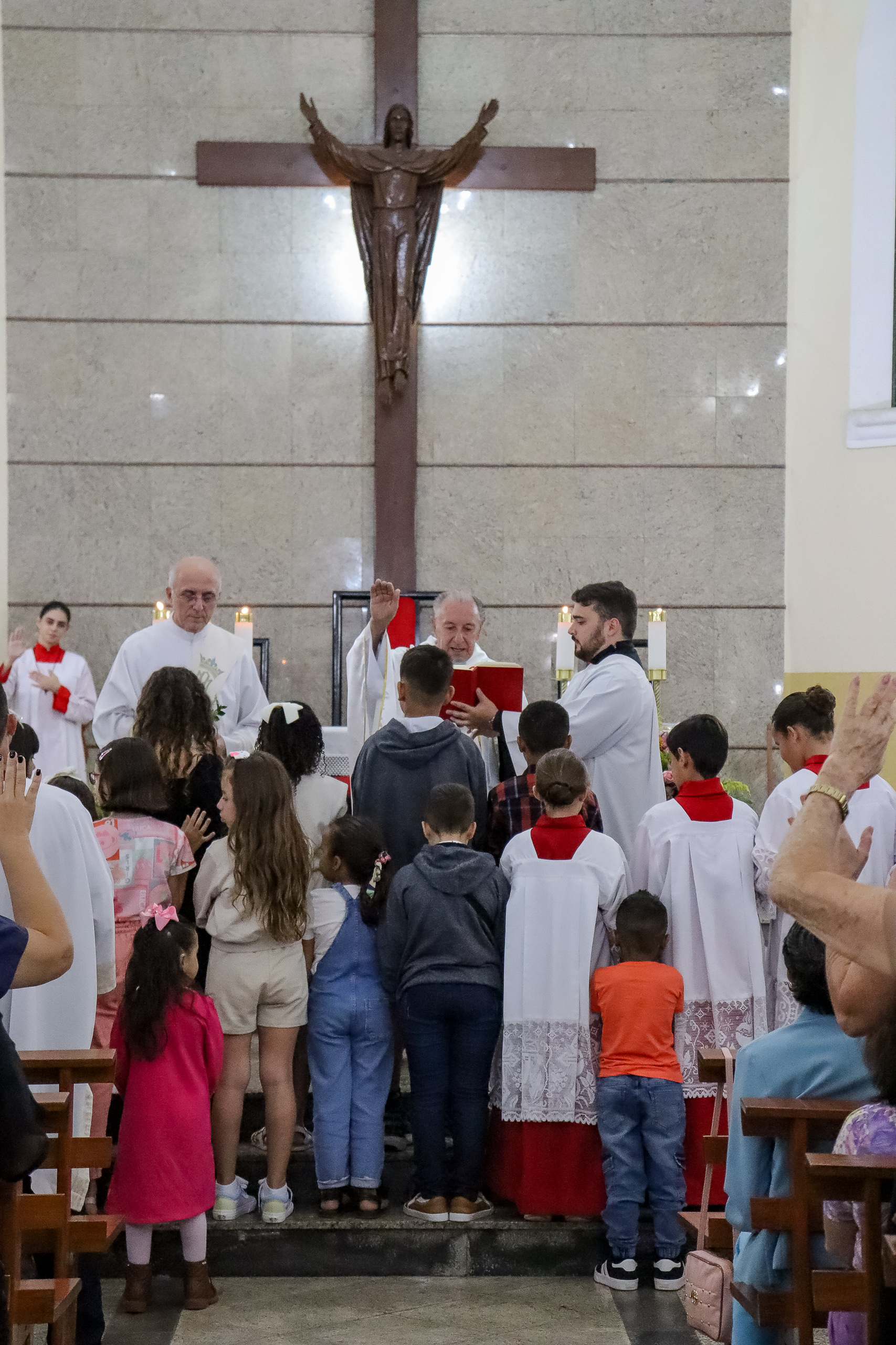 Um dos momentos mais marcantes da celebração foi a bênção especial dedicada às crianças e aos jovens da comunidade. Com palavras de esperança e encorajamento, Padre Oliveiro invocou sobre eles as graças de Deus, pedindo proteção e sabedoria para que sigam firmes no caminho do bem e da fé cristã.
