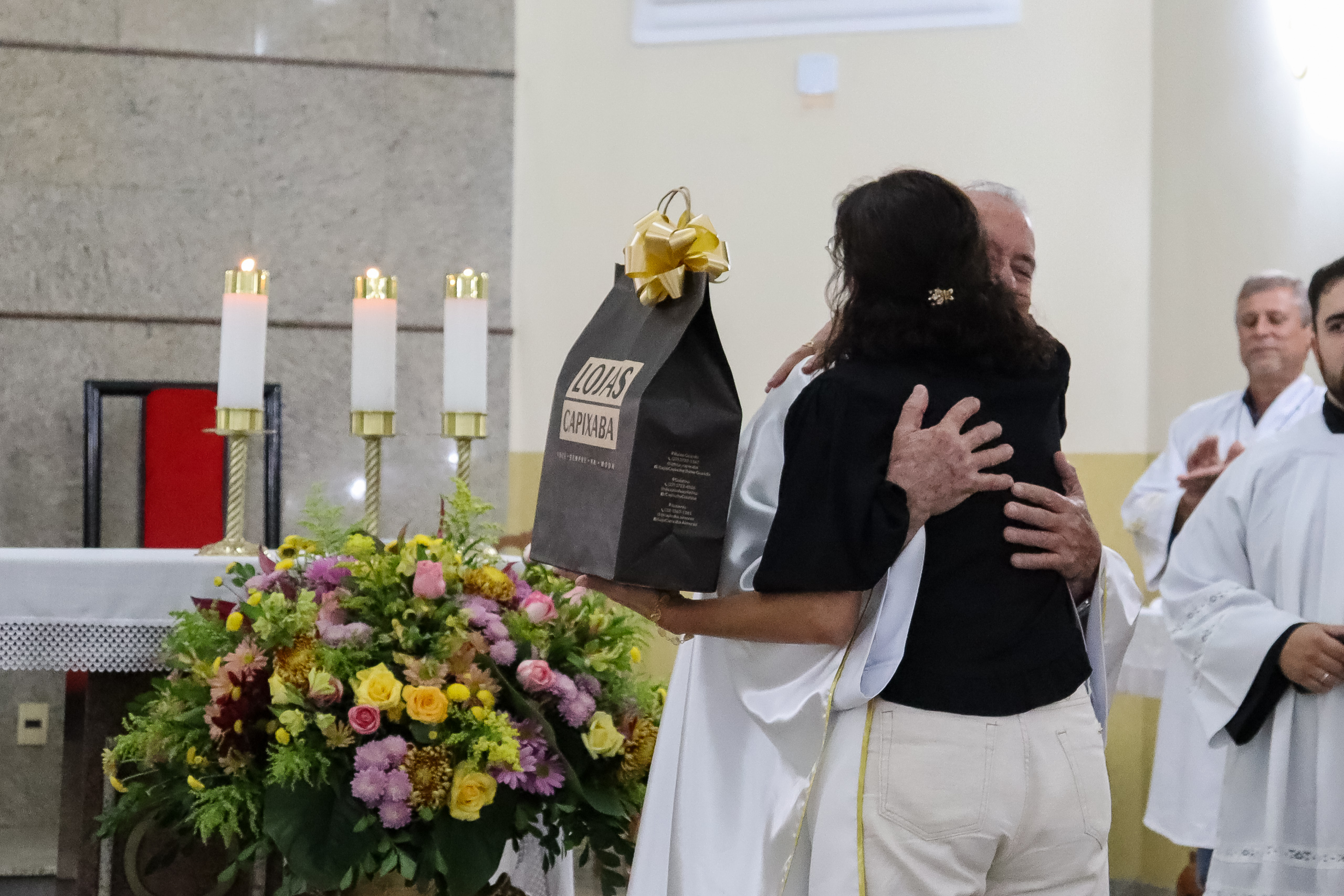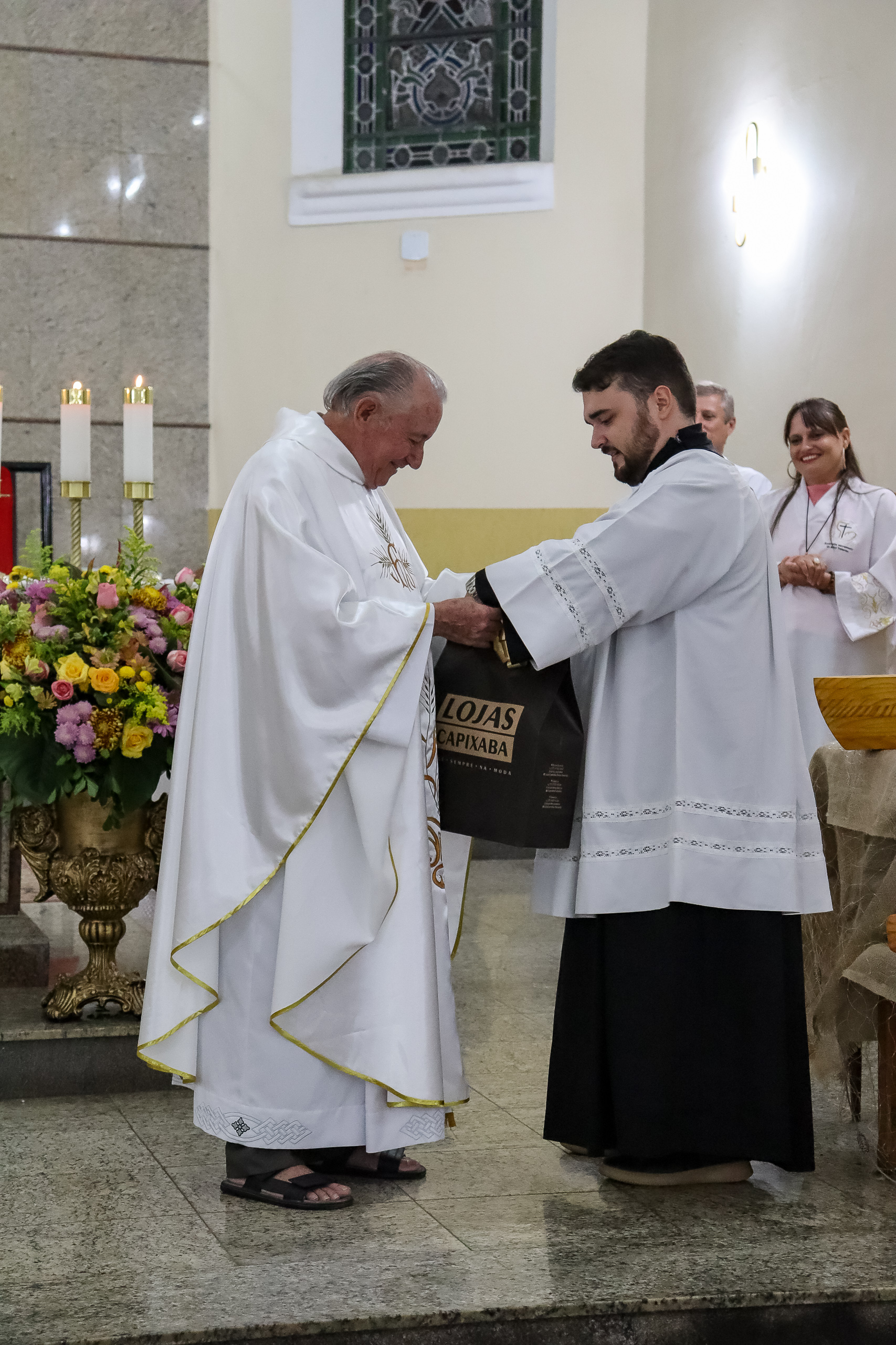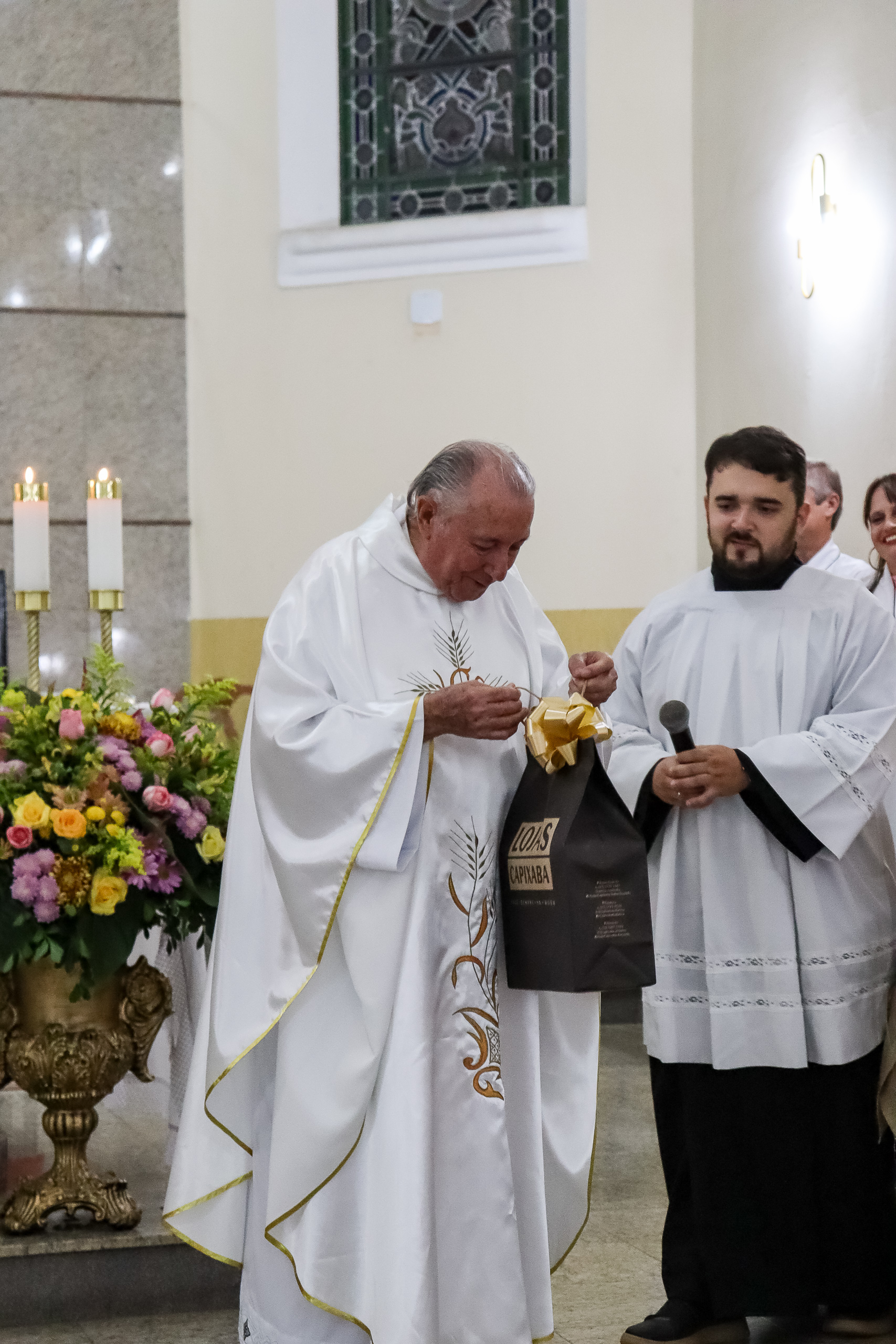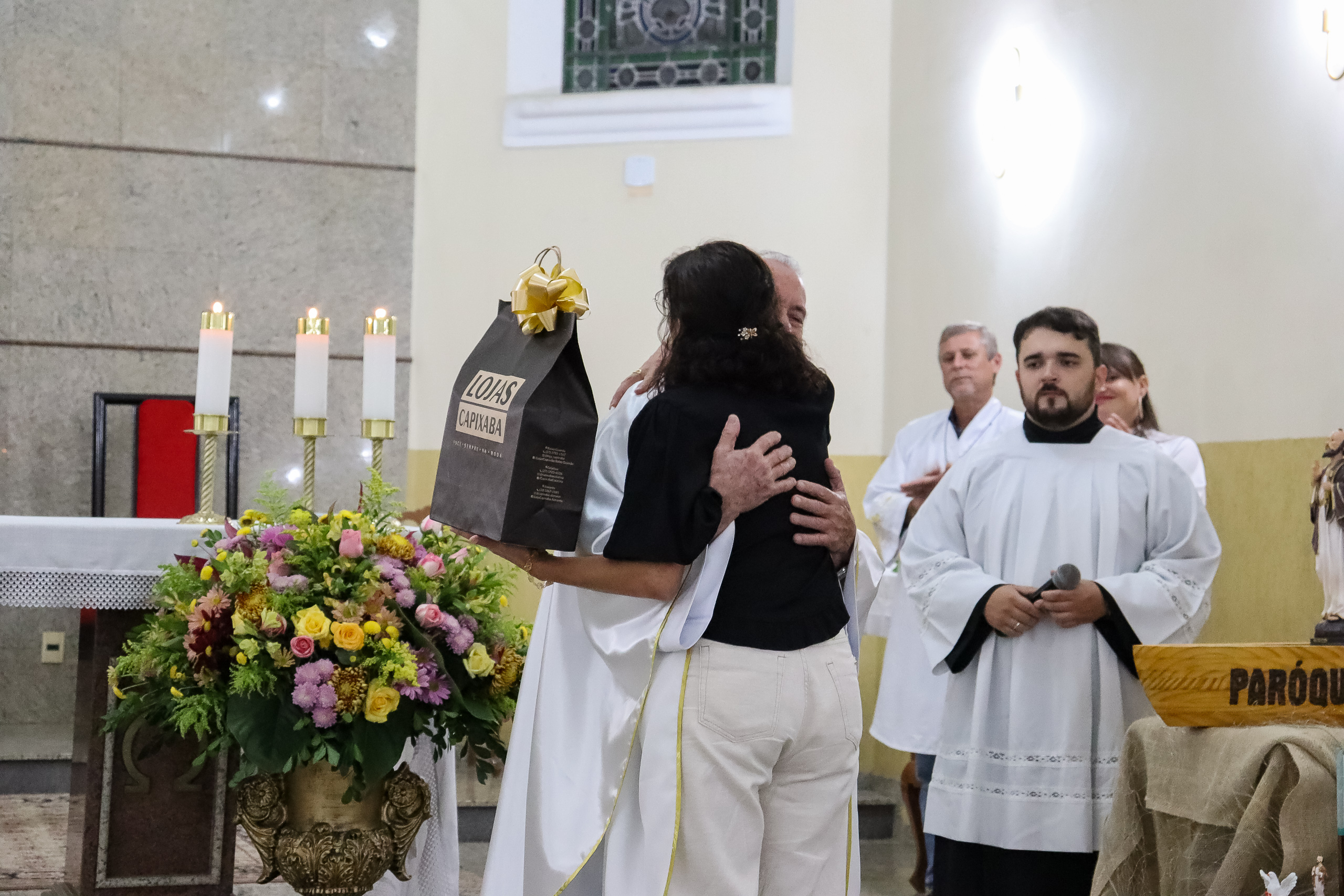 Ao final da celebração, a comunidade preparou uma homenagem especial ao Padre Oliveiro, entregando-lhe um presente como forma de agradecimento pelo carinho, dedicação e presença constante em nossas vidas. O gesto emocionou a todos e expressou a gratidão da paróquia por sua caminhada conosco.
